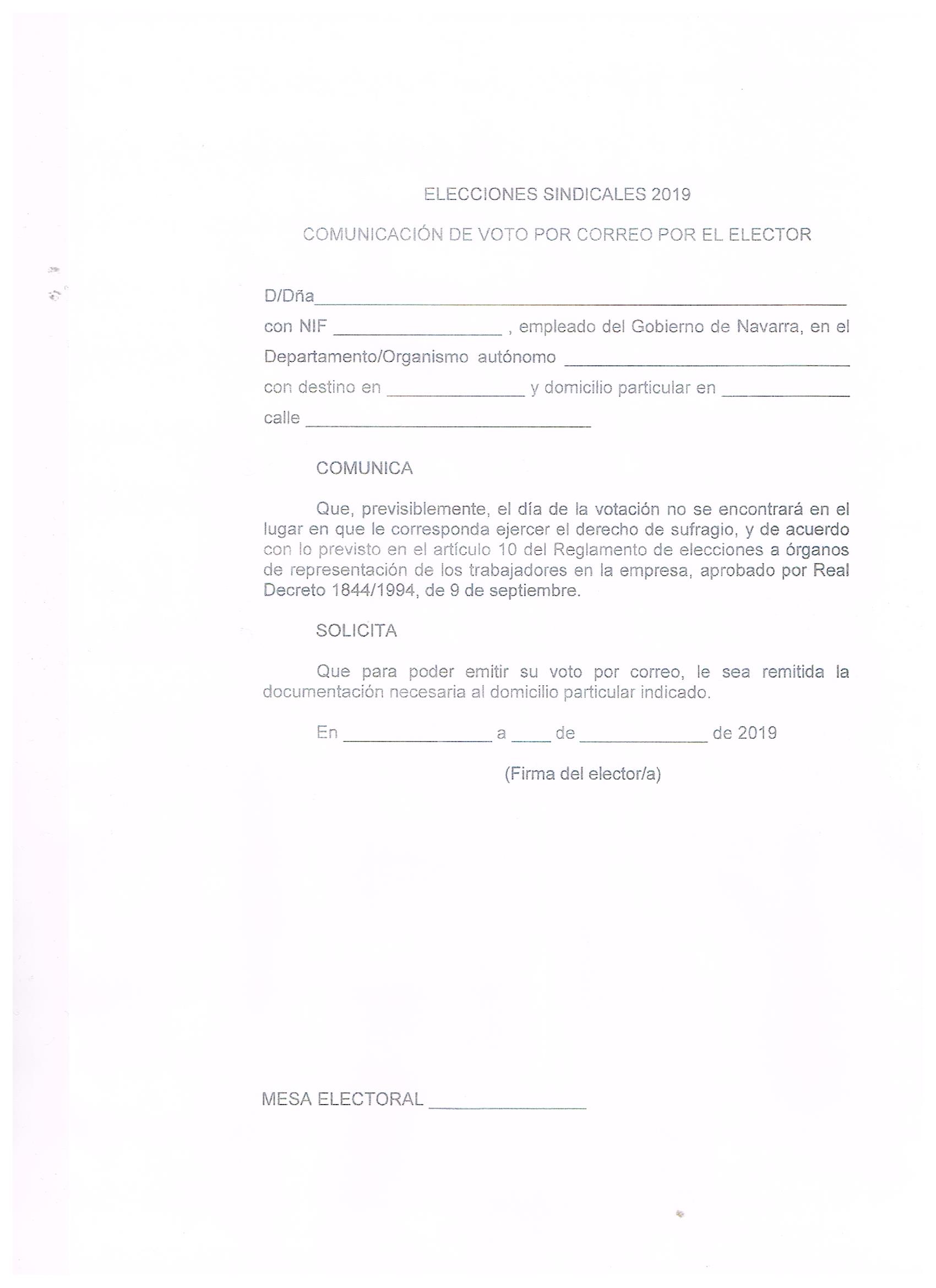 “Elecciones sindicales 2019- solicitud de voto por correo”