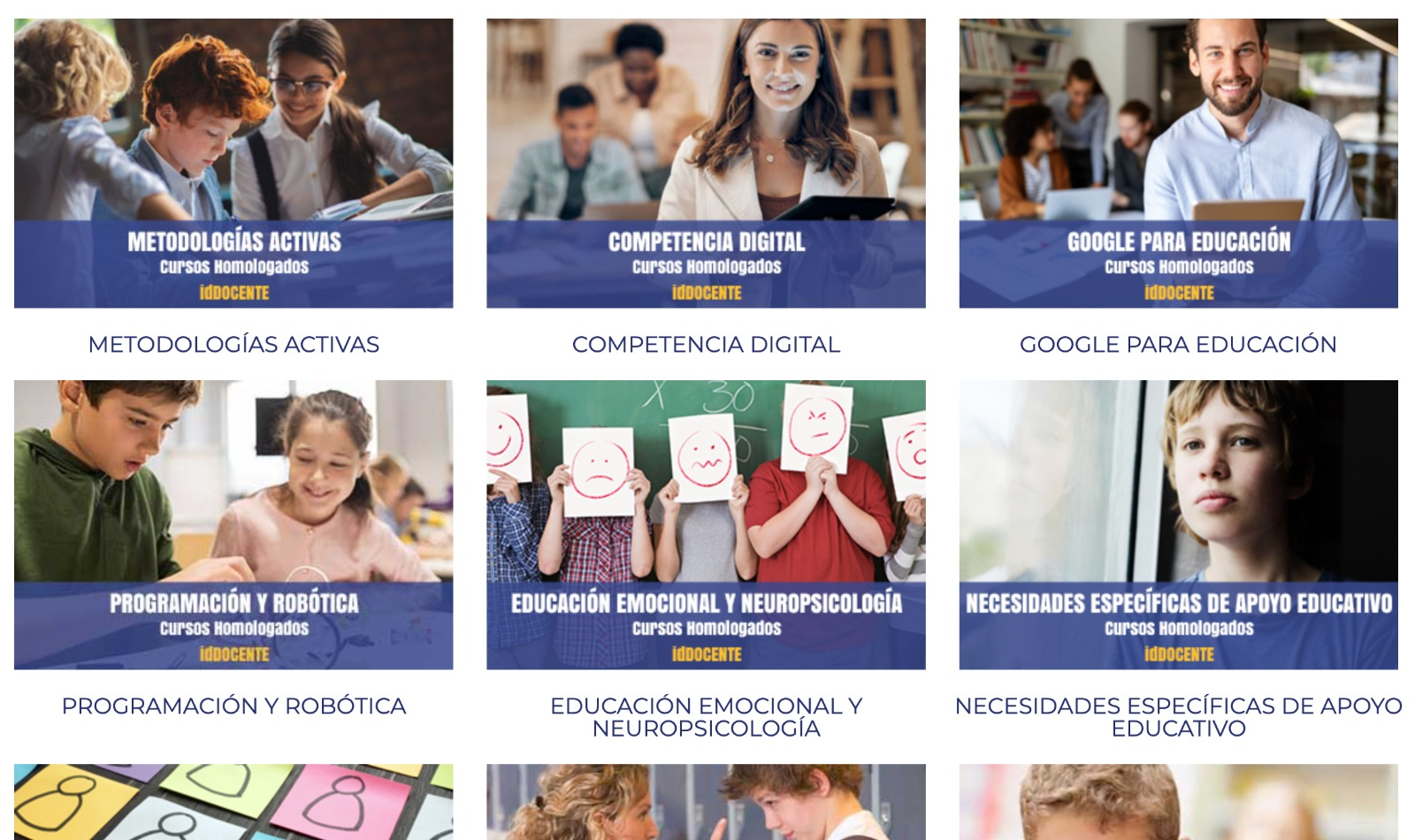La oferta es amplia y en los cursos que se ofrecen encontrarás cursos relacionados con la Educación Bilingüe, Coaching Educativo, Idiomas, Mediación y Acoso escolar, Necesidades específicas de apoyo educativo, Educación Emocional y Neuropsicología, Competencia Digital Docente y Metodologías activas.